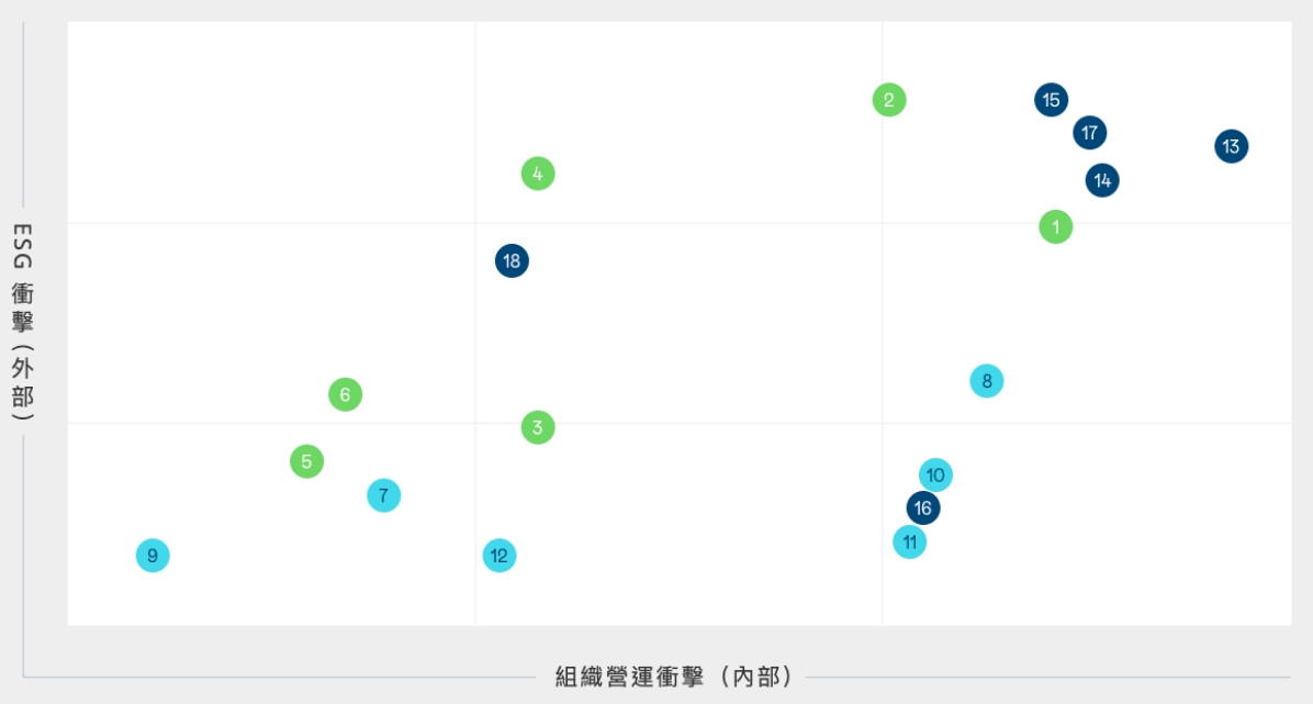 依循全球永續趨勢與 GRI 準則檢視議題之合適性,透過問卷瞭解利害關係人對公司在環境、社會 ( 含人權 )、公司治理三方面的關注面向,同時 建立雙重重大性評估方法,透過350vip8888新葡的京主管與價值鏈的關鍵夥伴評估 ESG 議題對公司所產生的營運衝擊程度,並在 ESG 外部永續發展衝擊方面,根據 GRI 通用準則 2021(GRI Universal Standards 2021) 的 GRI 3: 重大主題 (Material Topics 2021),整合價值平衡聯盟 (Value Balancing Alliance, VBA)、哈佛商學院「影響力加權會計 (Impact-Weighted Accounts)」研究計畫等機構發展之經濟、環境及社會層面衝擊評估方法學,建構以衝擊為基礎的重大性分析流程,辨識重大性主題。